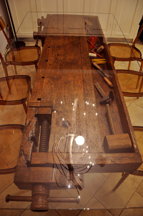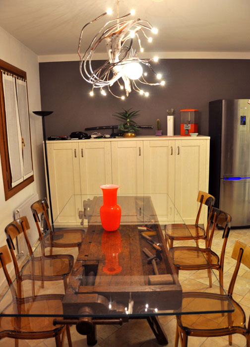 sopra il loro originale tavolo da pranzo, ( un caro ricordo di