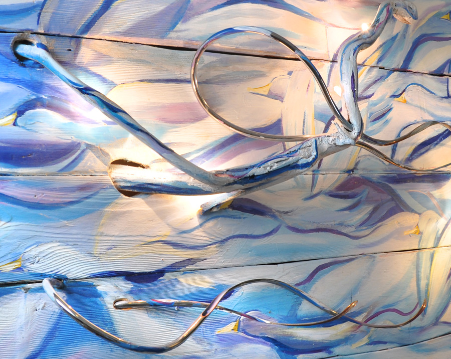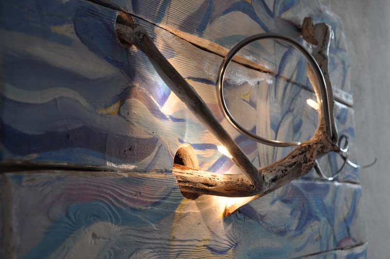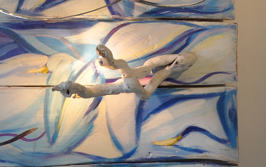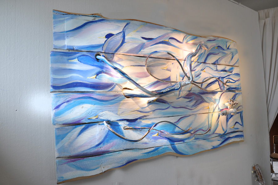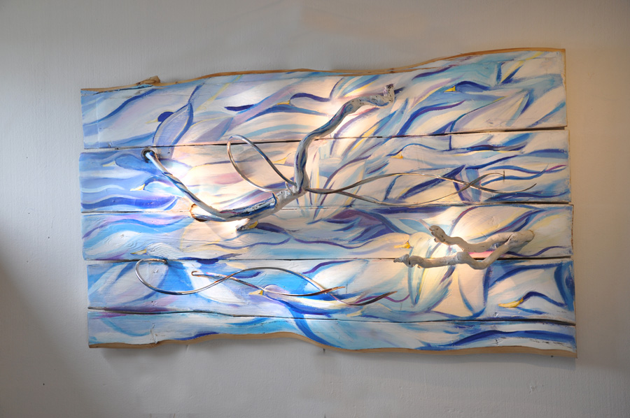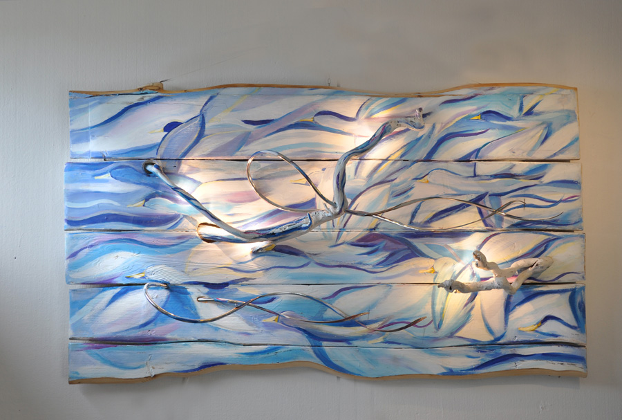 "Volatili" opera a due mani in un quadro scultura luminoso |